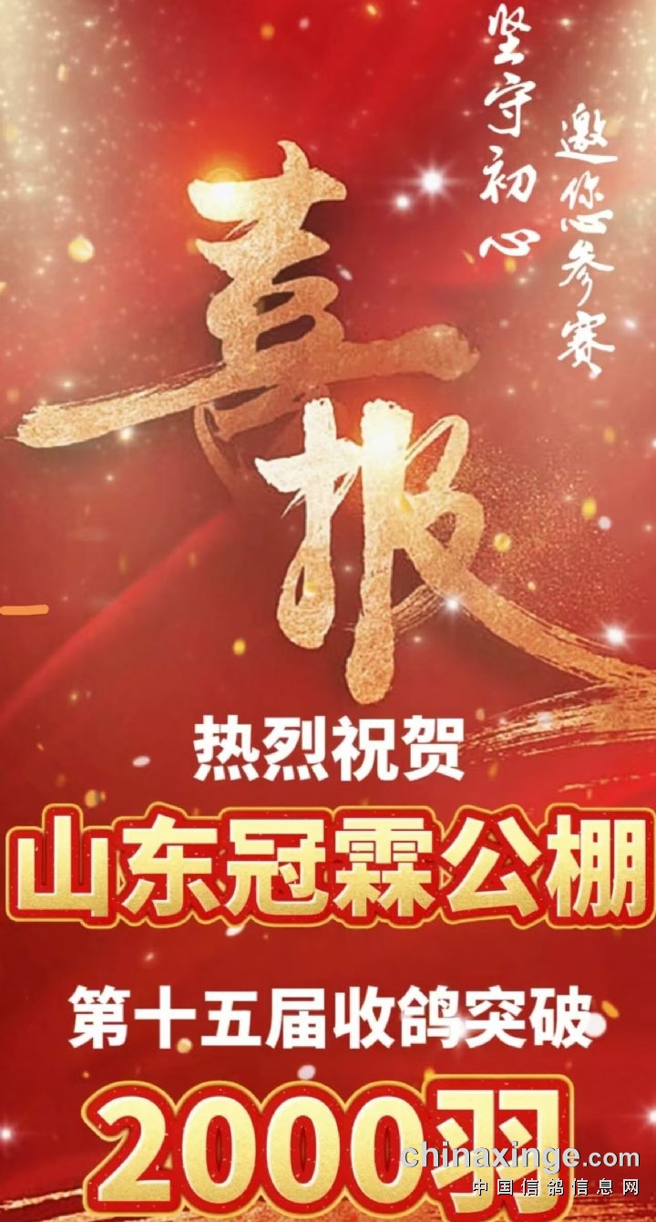 山东冠霖赛鸽公棚第十五届收鸽突破2000羽