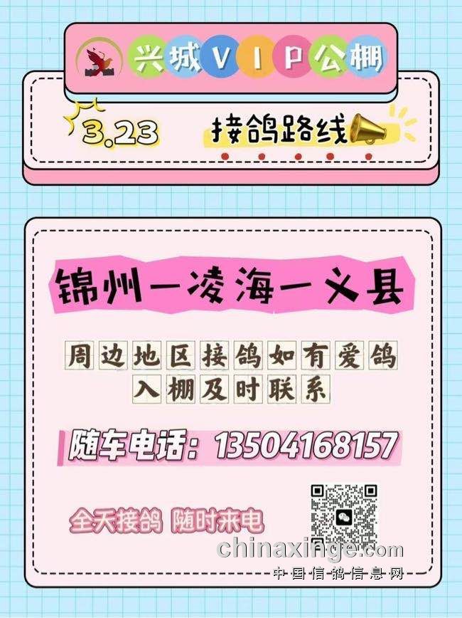 辽宁兴城VIP赛鸽公棚3月23日接鸽路线