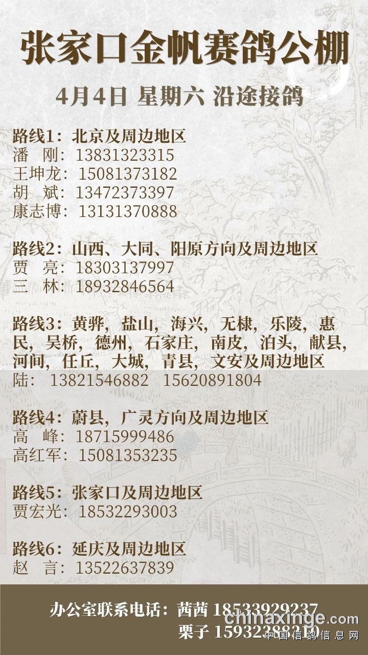 张家口金帆赛鸽公棚2026年收鸽明细,如有疑问请联系18533929237
