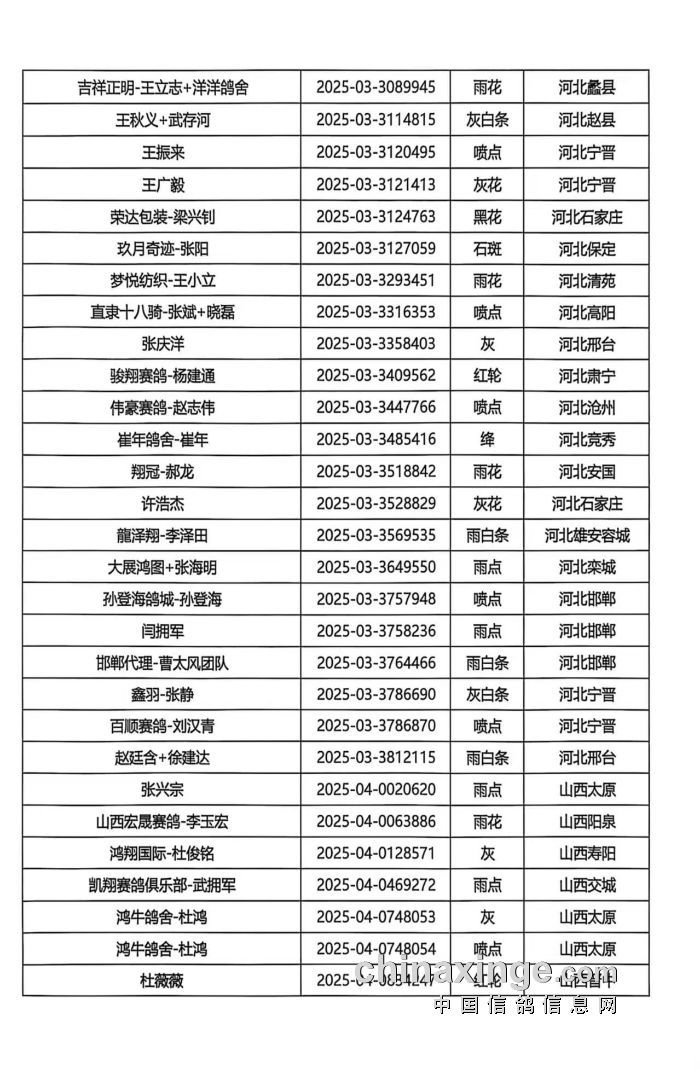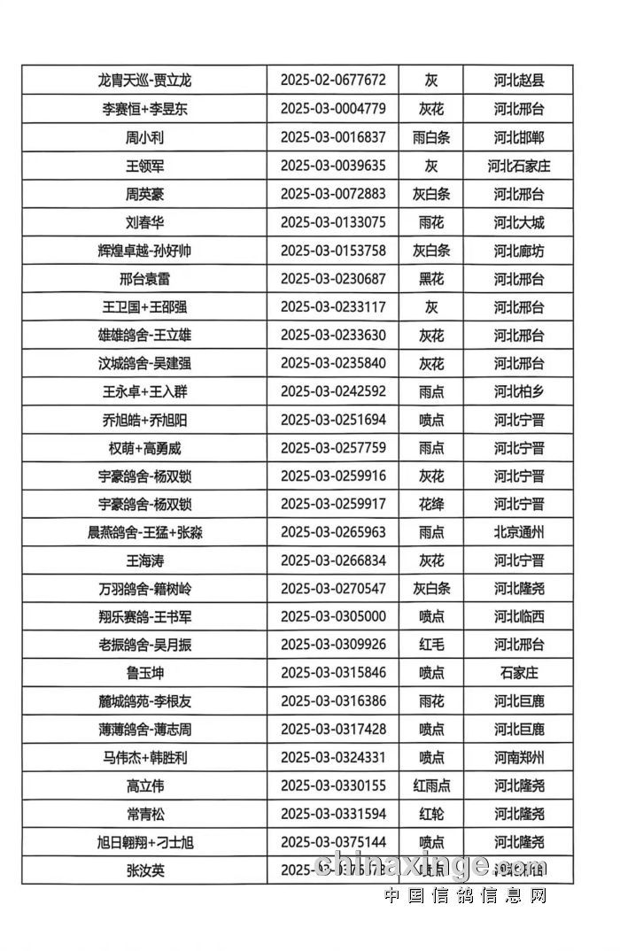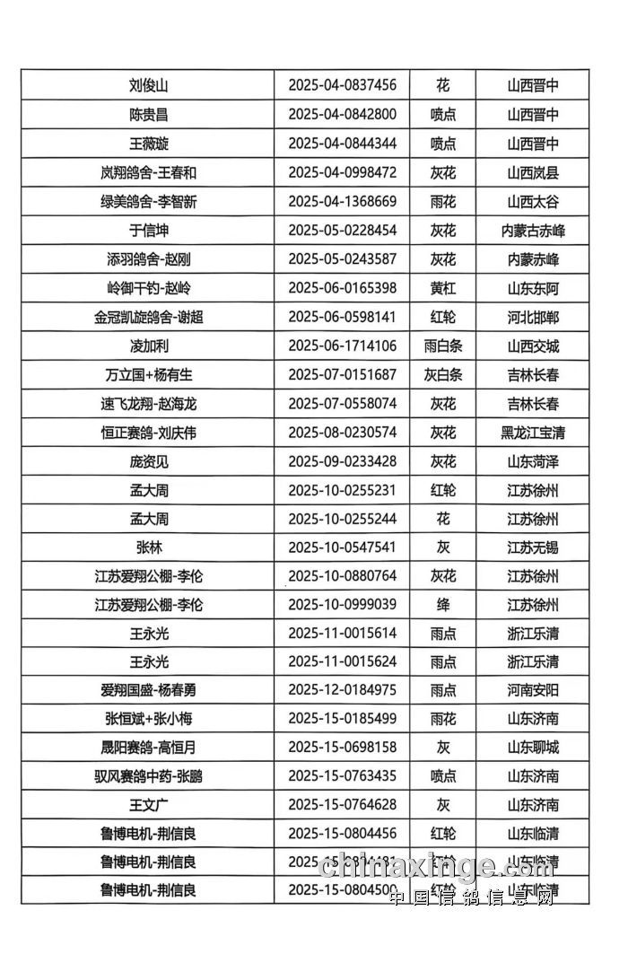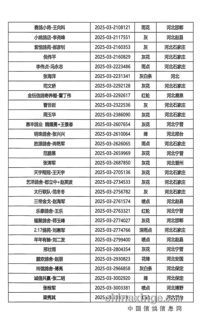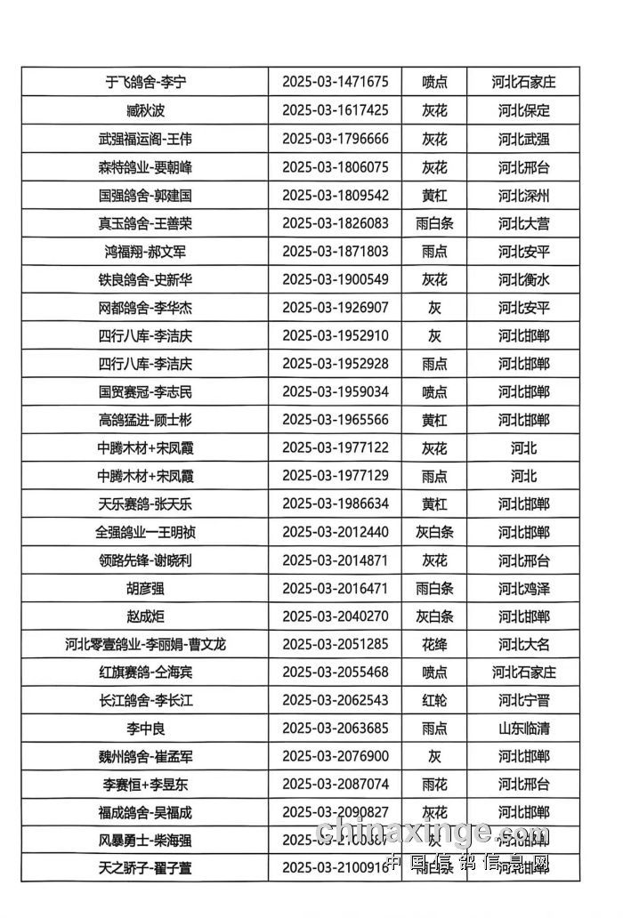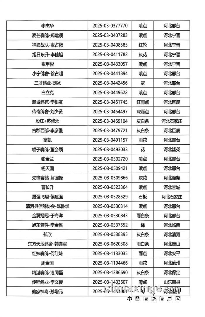 提示:如果此页面是训放清单,要想快速查询鸽环号,请按