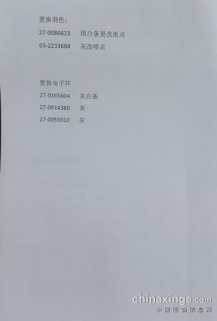更改羽色2羽(见附件)