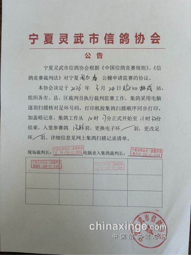 宁夏国力(春):2026年双关鸽王加站赛拍卖手册