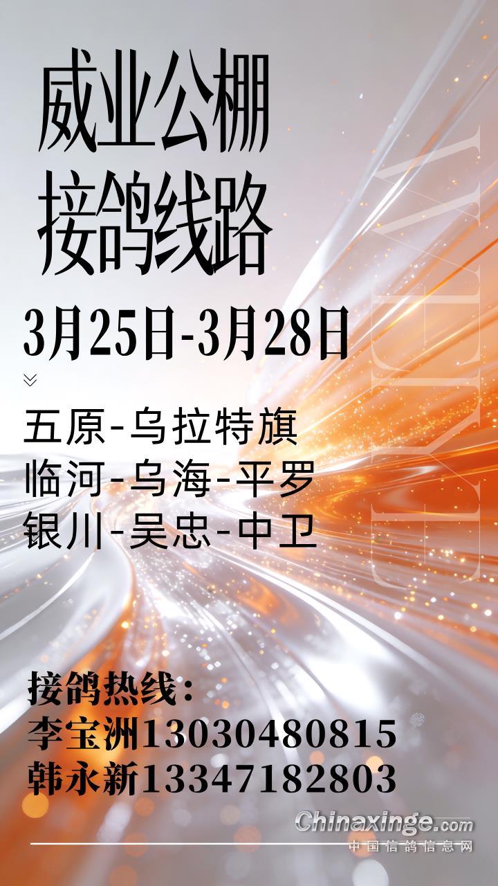 包头威业公棚3月25日-3月28日西线接鸽线路