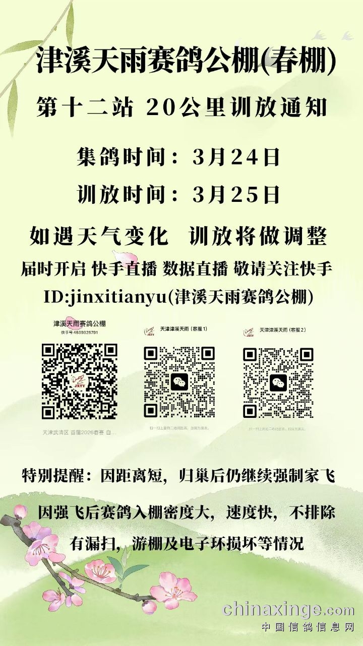 天津津溪天雨春棚第十一站20公里训放更改通知