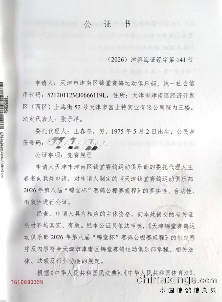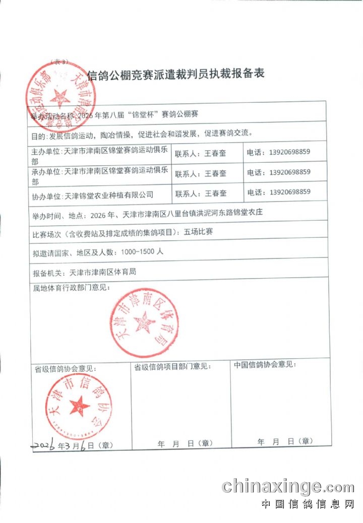锦堂公棚2026年赛事获准监管