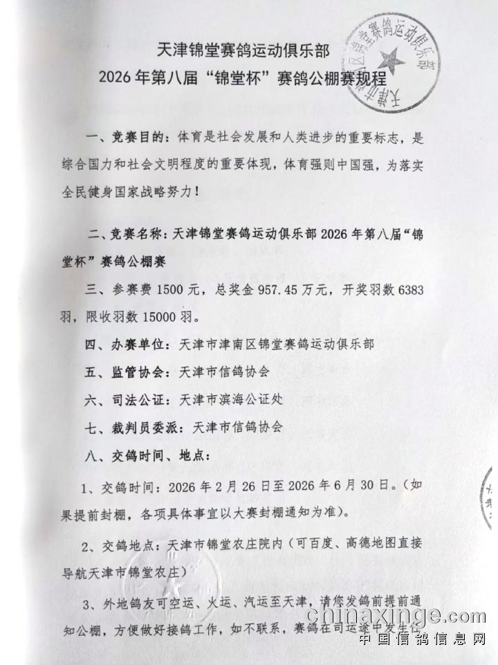 天津锦堂公棚2026第八届秋赛规程