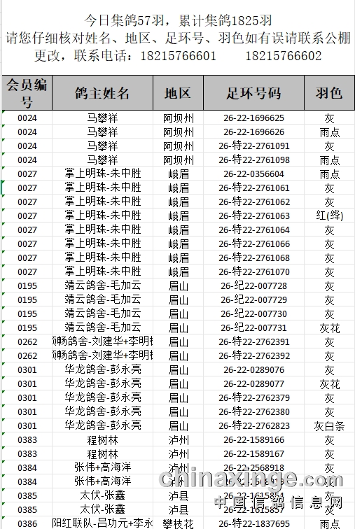 提示:如果此页面是训放清单,要想快速查询鸽环号,请按