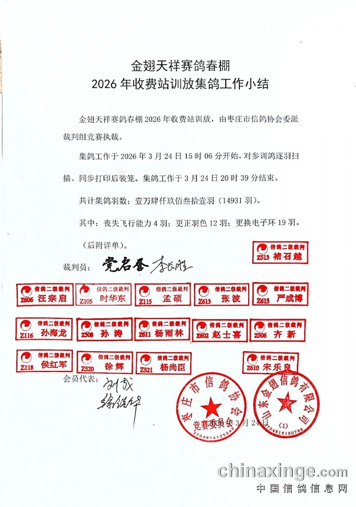 山东金翅天祥春棚 98-120公里收费站集鸽工作小结