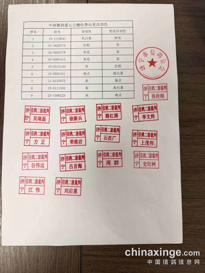 中润赛鸽爱心公棚(春棚)收费站集鸽清单(按会员)