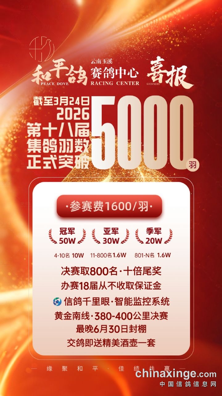 [喜报]和平鸽2026集鸽羽数突破5000羽!