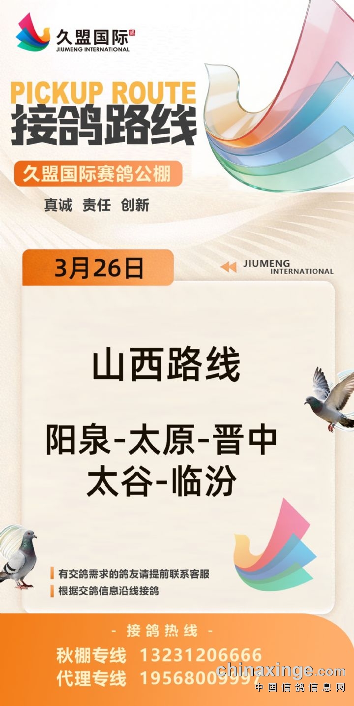 河北久盟国际赛鸽公棚(秋棚)3月26日接鸽路线