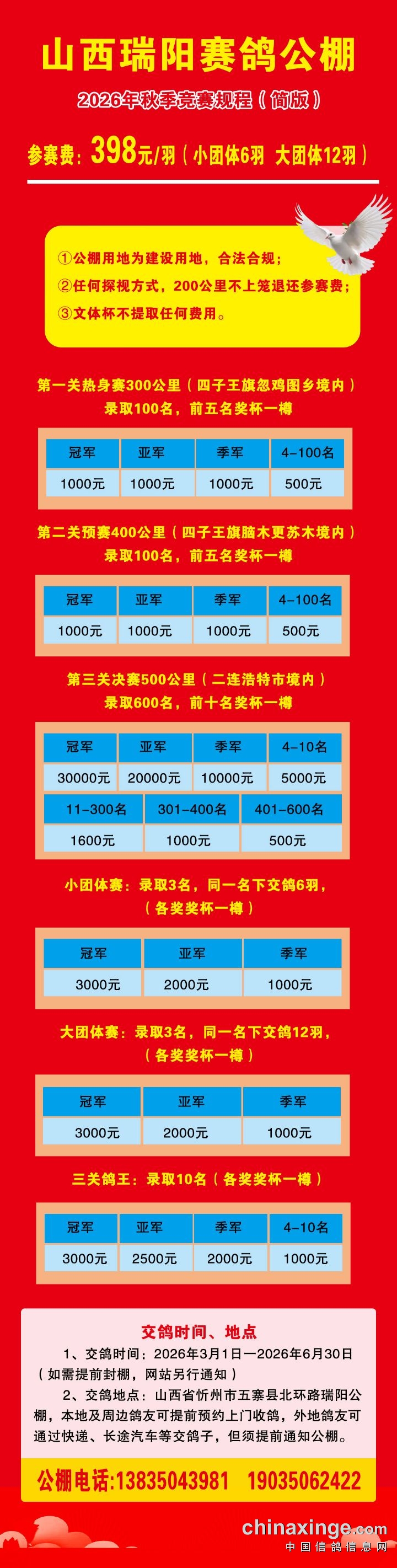 2025年秋五寨瑞阳寄养中心奖鸽欣赏391-403名