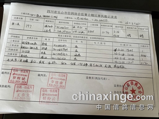 第一关乐山市鸽协执裁报表与三台县鸽协监放单