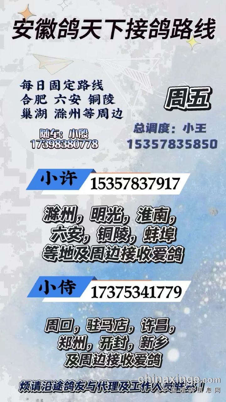 安徽鸽天下3月18日阜阳、黄山、淮北接鸽路线