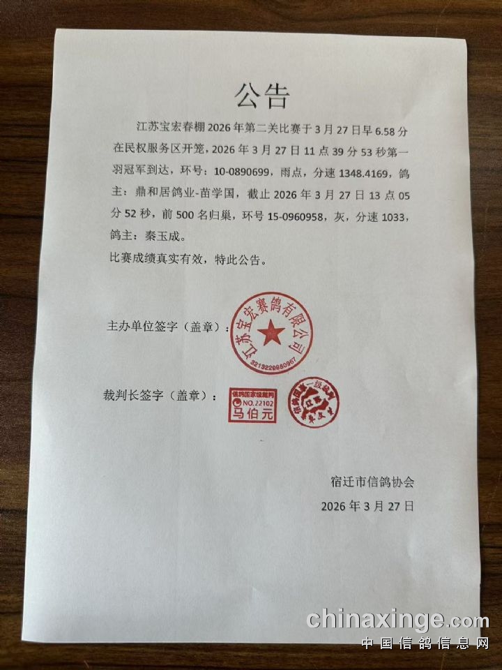江苏宝宏春棚2026年第二关开笼公告