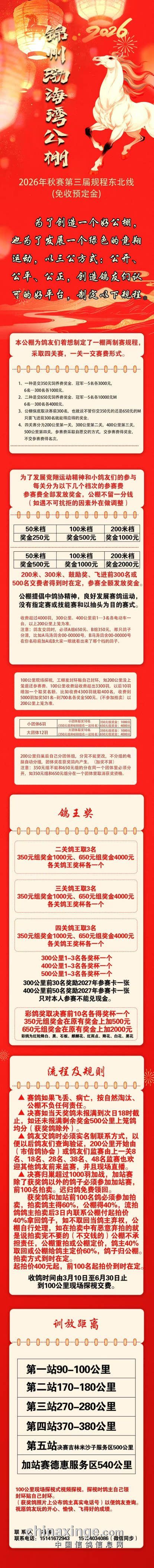 锦州渤海湾公棚2026年秋赛第三届规程东北线