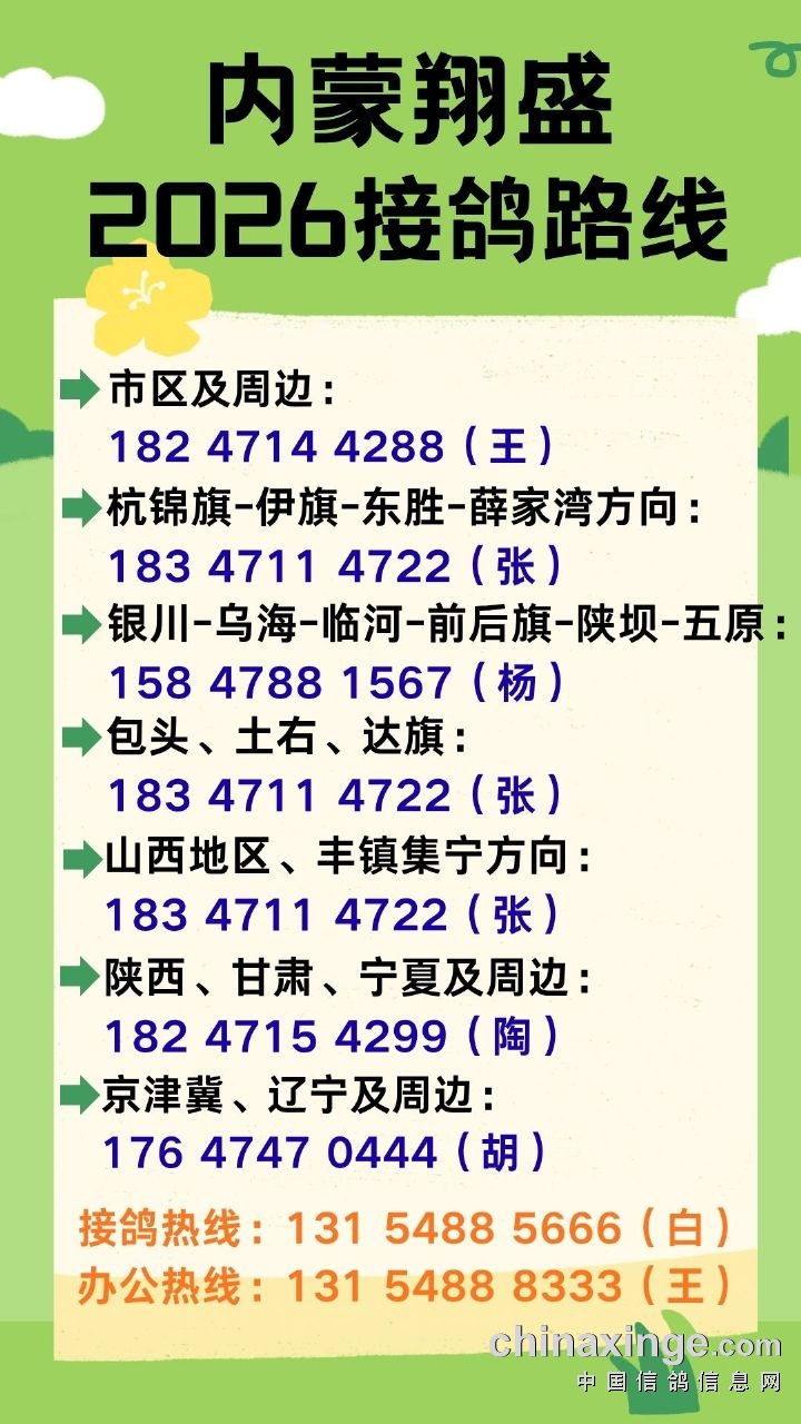 内蒙古翔盛赛鸽公棚2026年收鸽明细---不断更新中