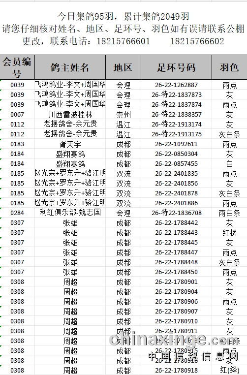 提示:如果此页面是训放清单,要想快速查询鸽环号,请按