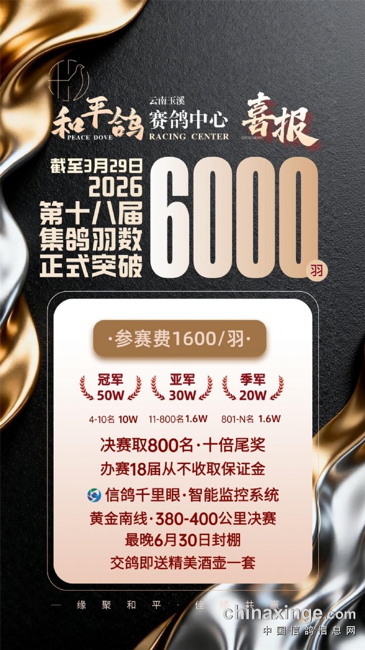 [喜报]和平鸽2026集鸽羽数突破6000羽!