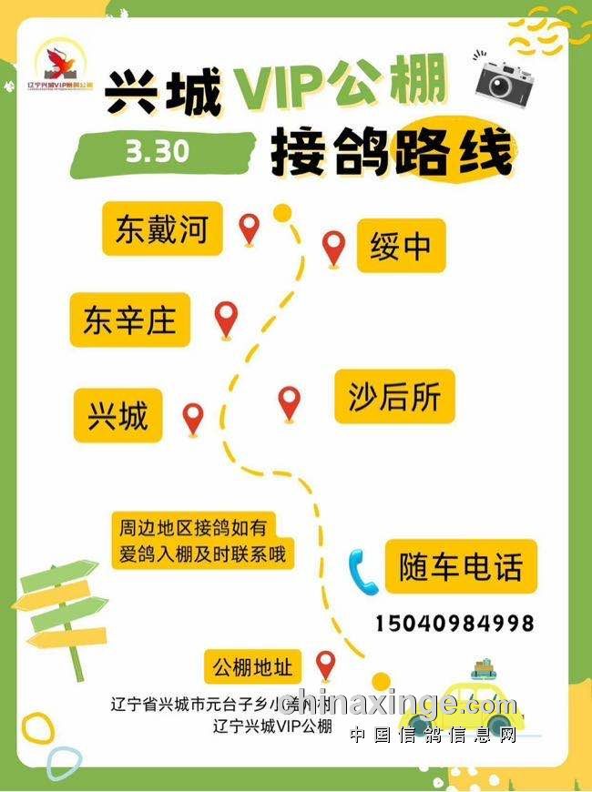辽宁兴城VIP赛鸽公棚3月31日接鸽路线