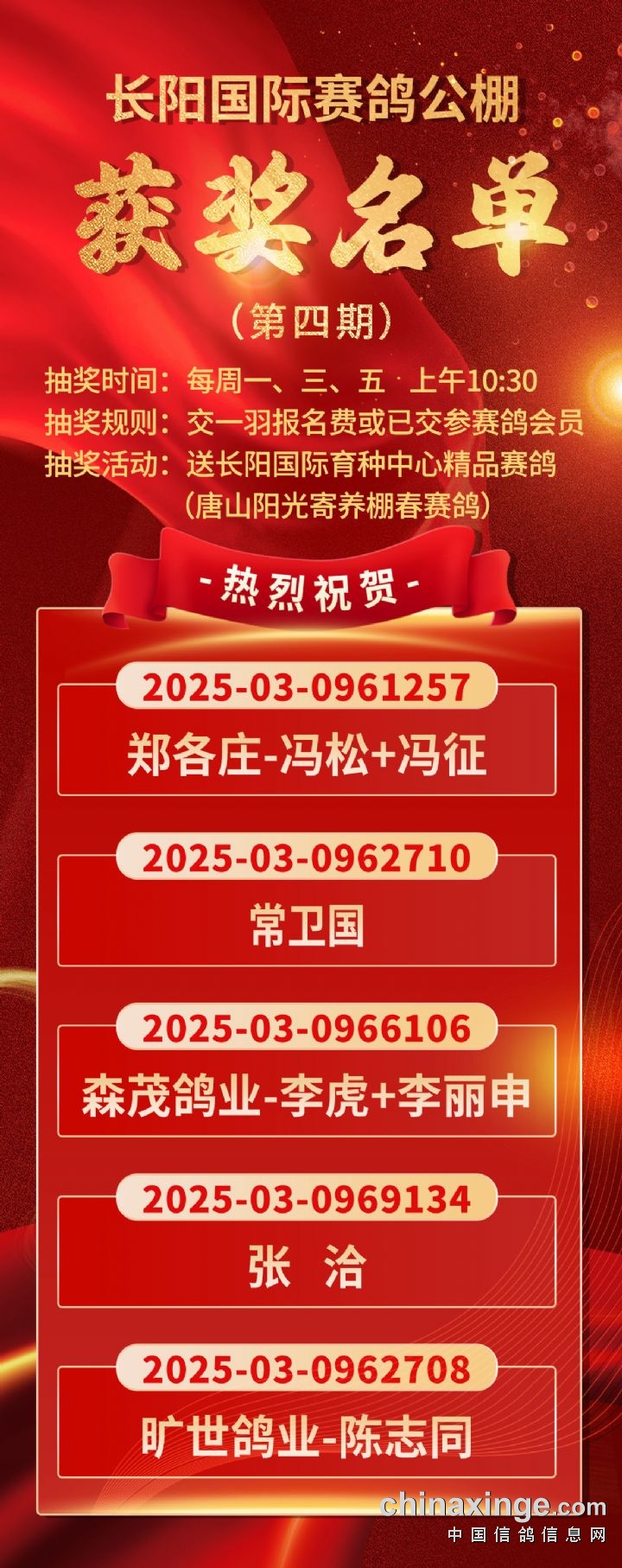 长阳公棚:第四期精品赛鸽抽奖活动--获奖名单