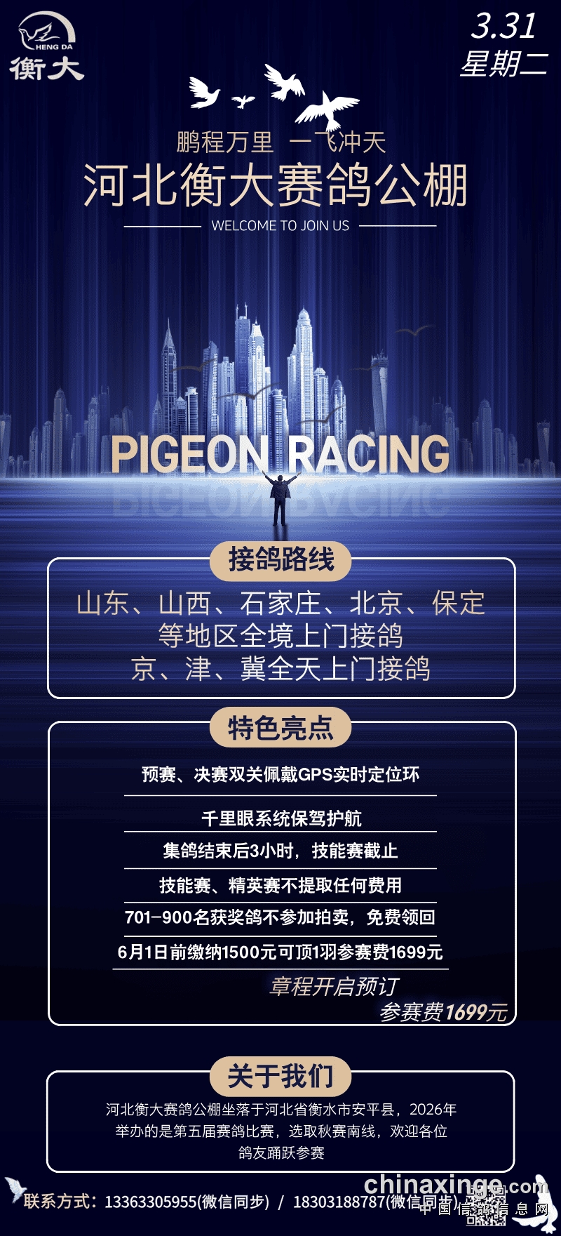 河北衡大:3月31日接鸽路线