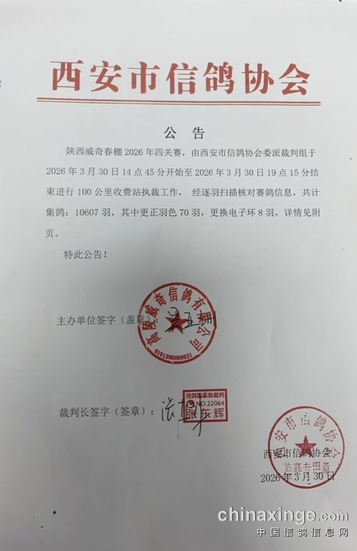 陕西威奇赛鸽春棚100公里收费站开笼公告