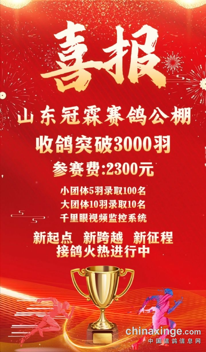 山东冠霖赛鸽公棚第十五届收鸽突破3000羽