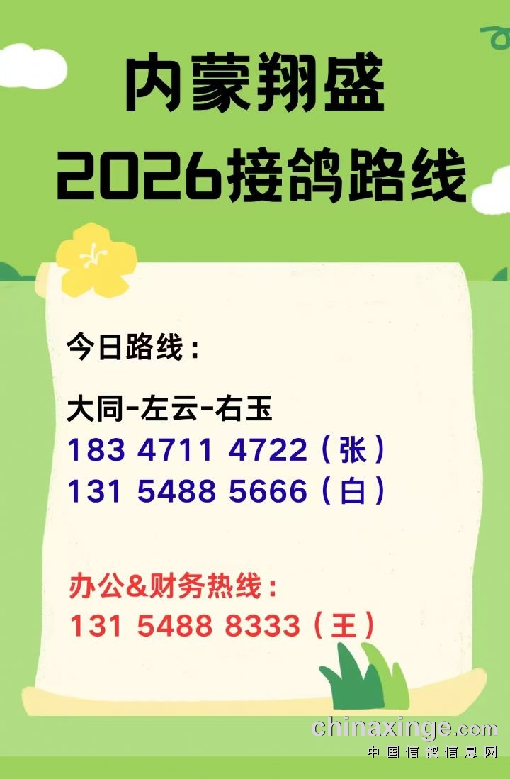 内蒙古翔盛赛鸽公棚2026年收鸽明细---不断更新中