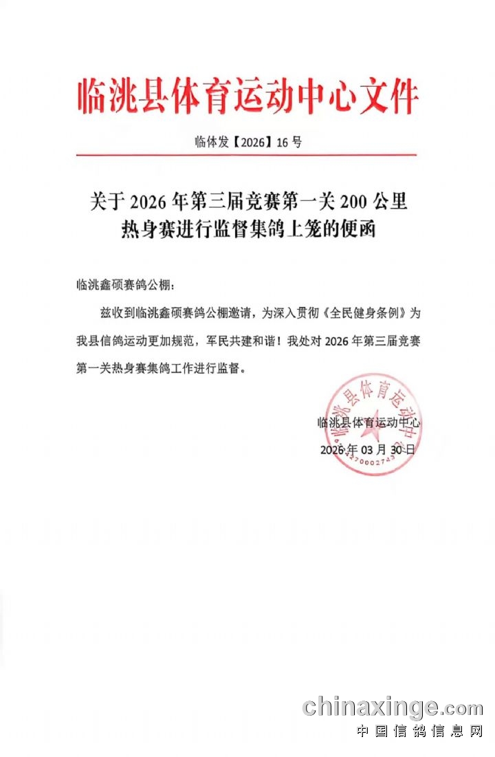 甘肃鑫硕赛鸽公棚2026年200公里热身赛开笼公告