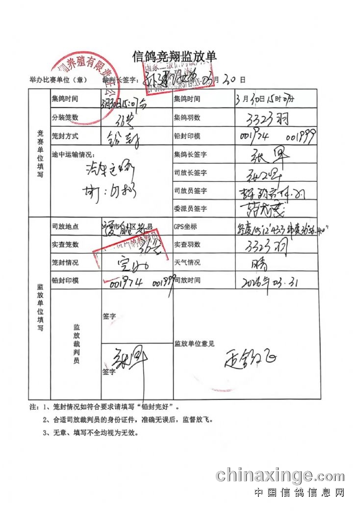 由于司放地晴,归巢地有严重大雾且带有零星雨滴,为了大家的爱鸽安全归巢,公棚慎重考虑决定于9:28分开笼放飞。