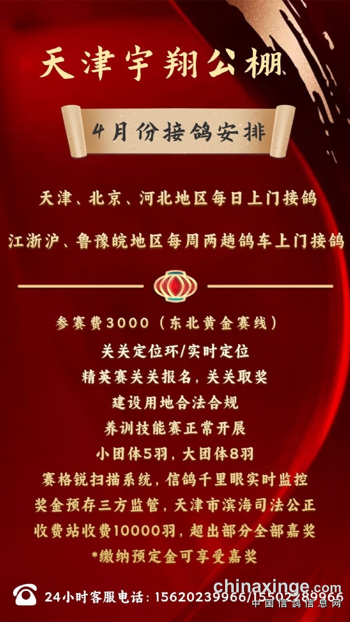 天津宇翔:四月份接鸽安排