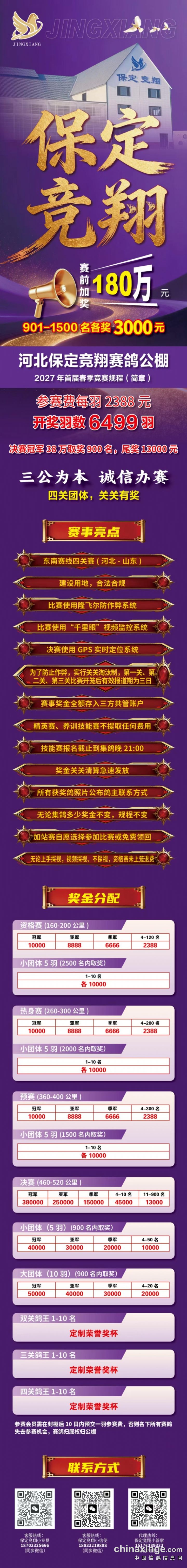 保定竞翔(春棚):2027年首届春季竞赛规程(简章)