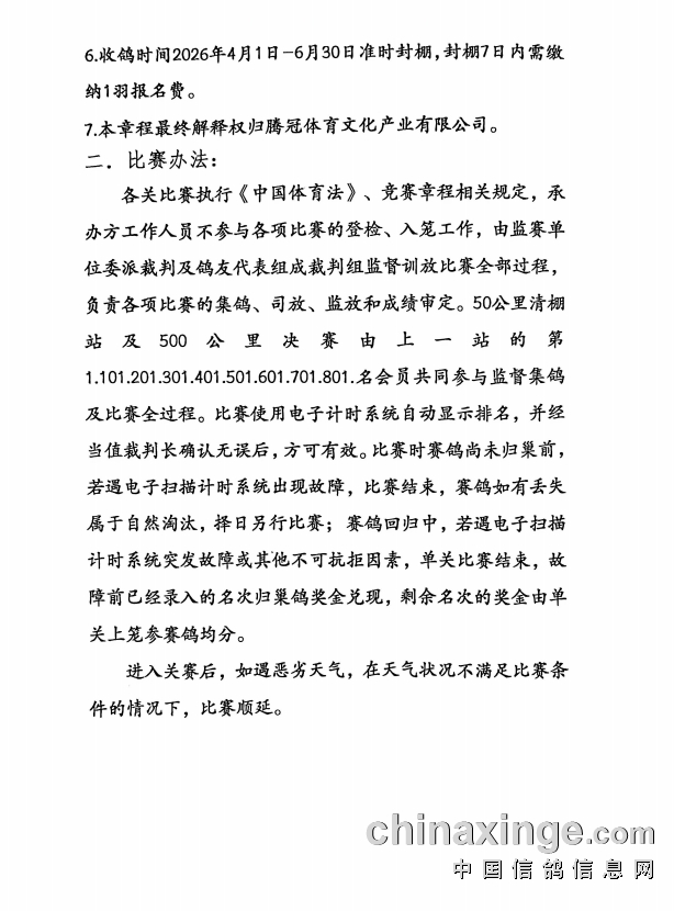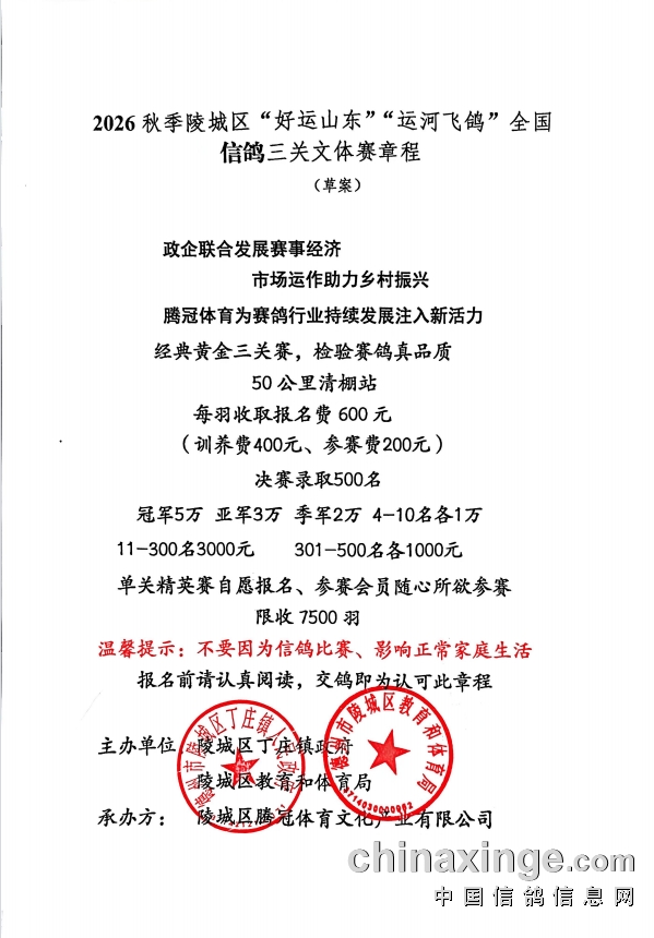 2026秋季陵城区“好运山东”“运河飞鸽”全国信鸽三关文体赛章程
