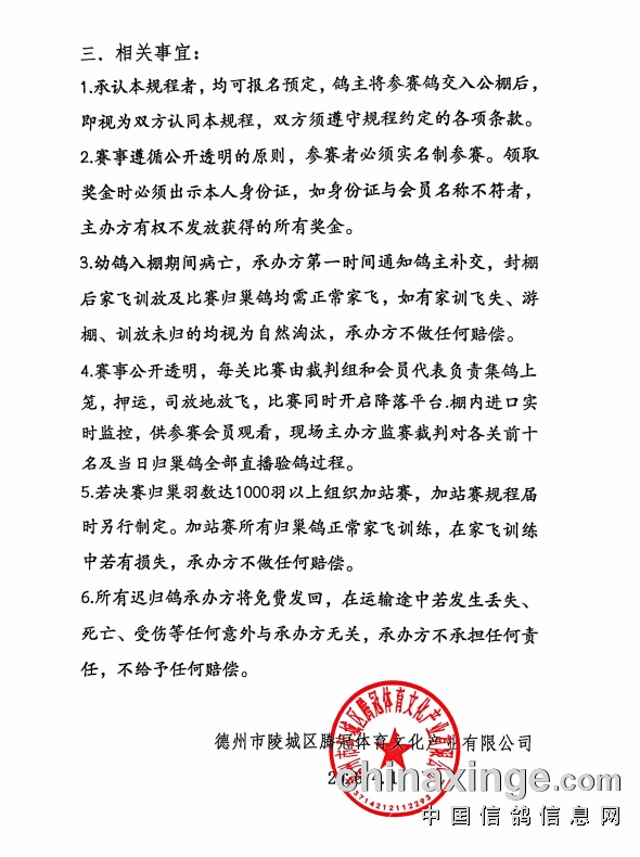 关于举办“好运山东”“运河飞鸽”2026年陵城区全国信鸽大赛的邀请函