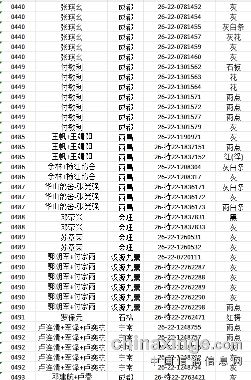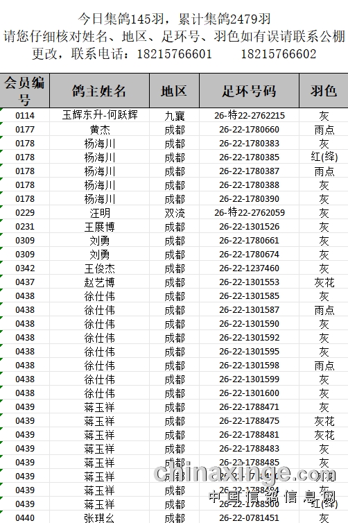 提示:如果此页面是训放清单,要想快速查询鸽环号,请按