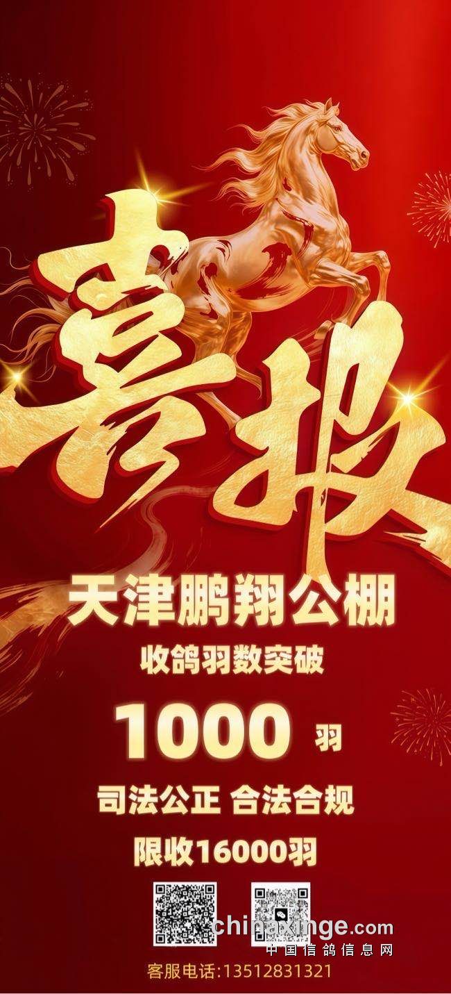 天津鹏翔公棚2026年秋季大奖赛收鸽清单