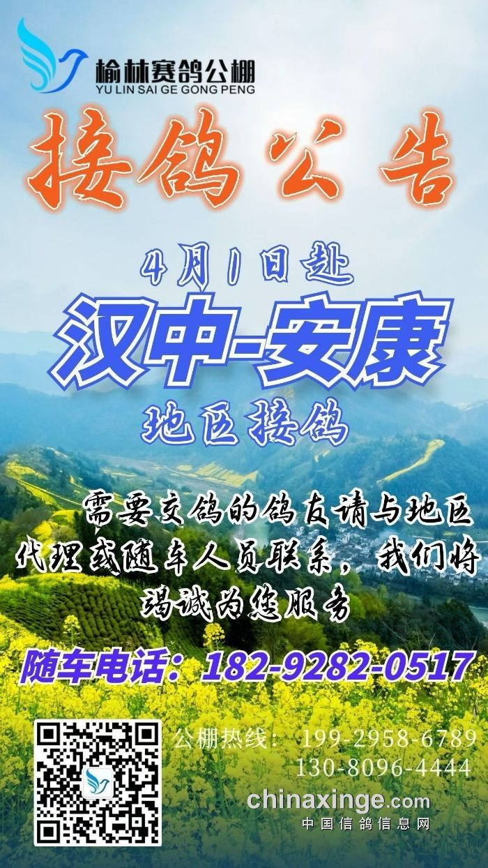 陕西榆林赛鸽公棚4月1日赴汉中、安康地区接鸽