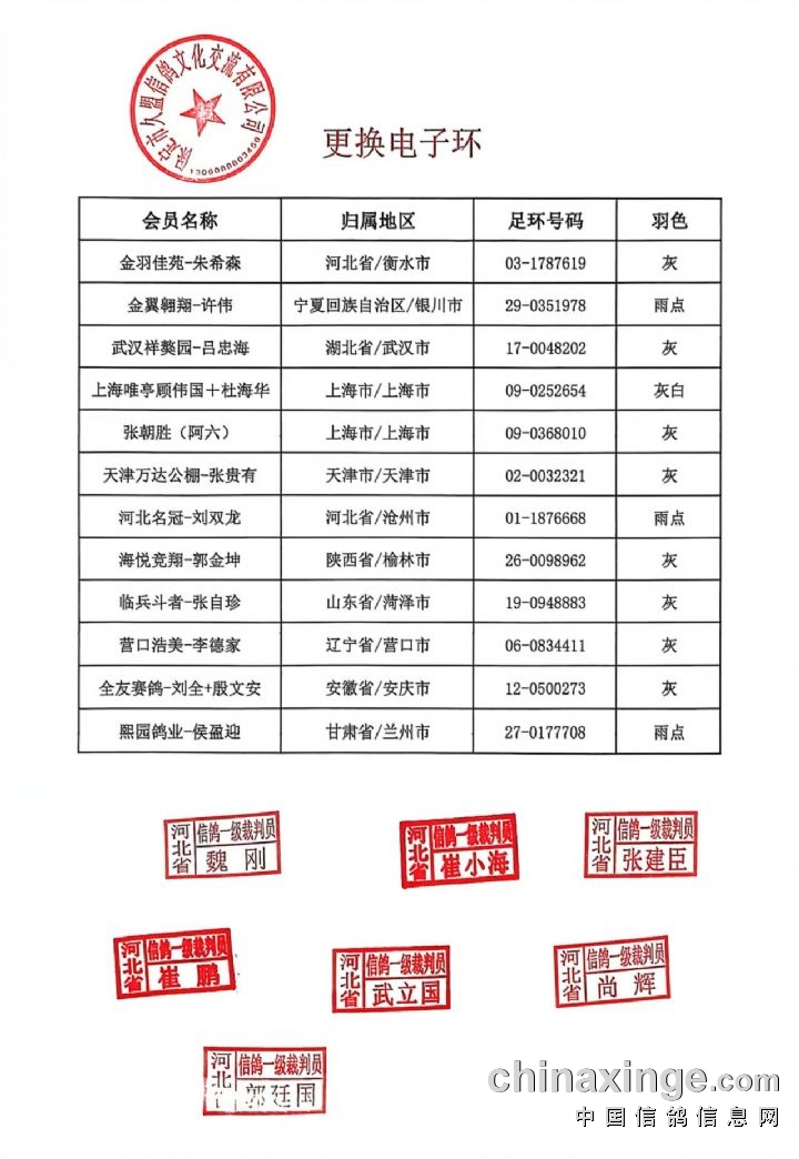 河北久盟国际赛鸽公棚(春棚)收费站逐羽集鸽数据