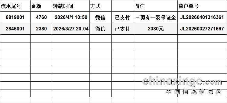 以下两位鸽友微信扫码支付参赛费,未备注参赛会员名,请各位鸽友自行核对,未联系公棚收到参赛卡的,请及时联系公棚财务18009175813