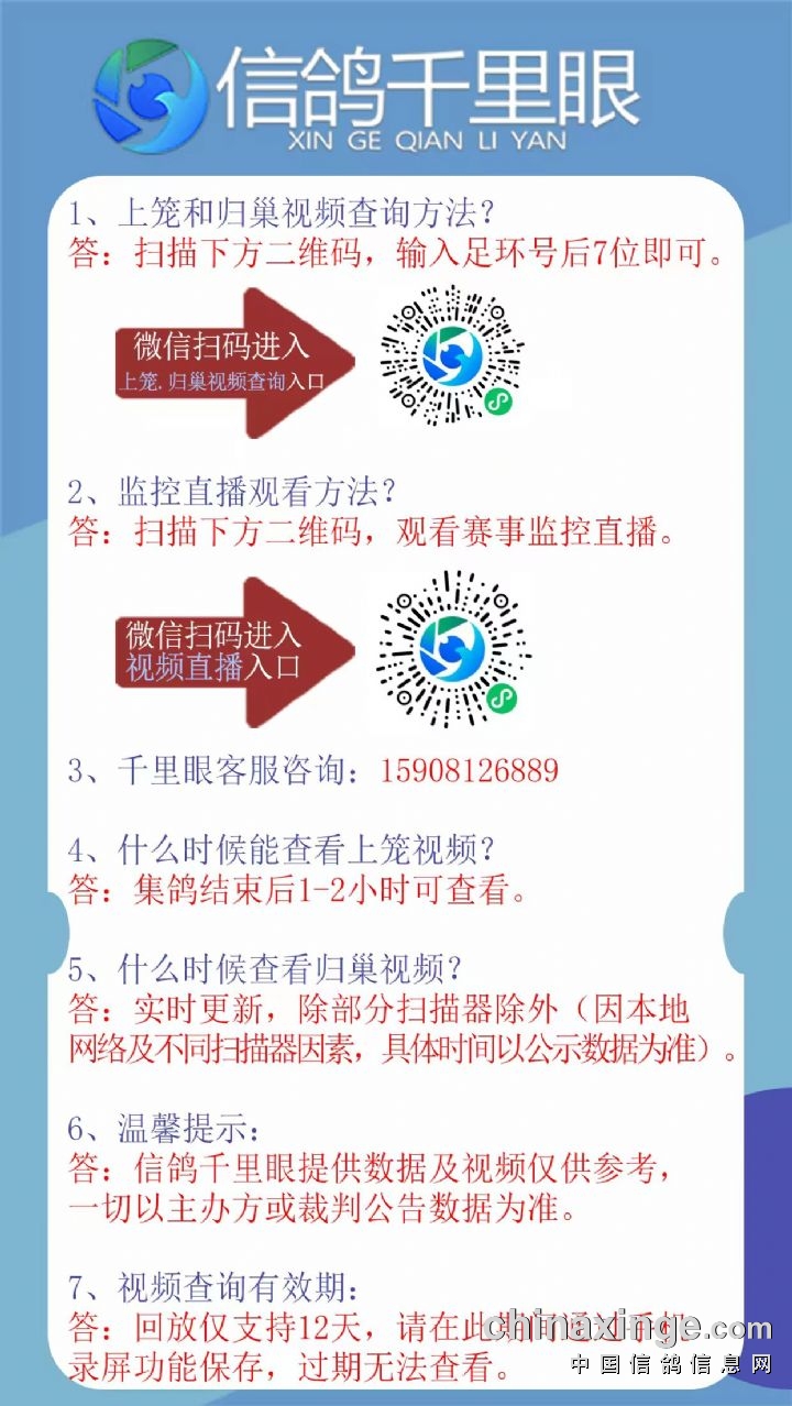 信鸽千里眼视频监控系统(简称信鸽千里眼),是一款服务信鸽赛事的可视化系统,致力于以信鸽赛事透明化服务为基础,让每一羽赛鸽得到应有的尊重,为信鸽赛事公开透明化赋能。信鸽千里眼硬件采用央企海康威视产品线标准生产,云平台基于央企萤石云开放平台开发,二者合一将音视频的直播、录制、存储、分析等能力在信鸽领域进行投入使用。