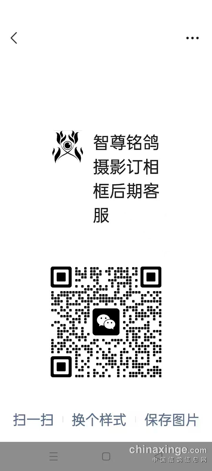 尊敬的鸽友: 云南红河天顺赛鸽中心(春棚),第二届2026年决赛精英获奖鸽已经拍照完毕,制作时间预计两天,公棚决赛前十相框鸽王前十相框由公棚提供,如需定制烤瓷相框的鸽友们可提前扫描联系智尊铭鸽摄影客服微信二维码, 烤瓷相框尺寸50厘米X70厘米,新版金边烤瓷相框有200一个,新版木质相框230一个,老版(150一张) 备注 邮费自理的哦。