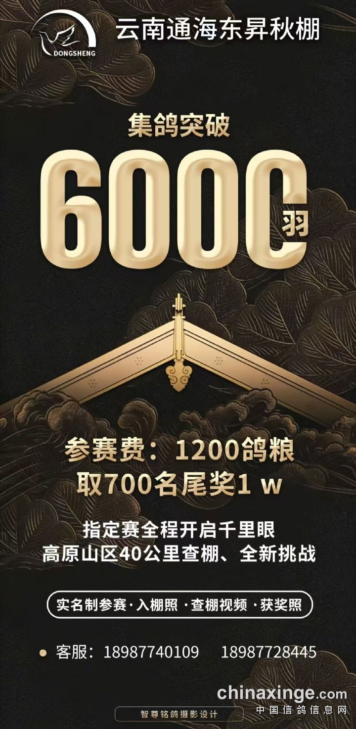 全程启用信鸽千里眼监控系统,高度诠释赛事公开透明度,不收保证金直接交鸽就可,欢迎您的爱鸽入住东昇,祝大家鸽运亨通,身体健康万事如意[烟花][烟花][烟花][烟花] |