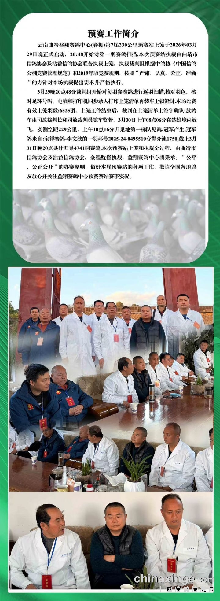 云南益翔春棚(第七届)230公里预赛未上笼指定鸽清单