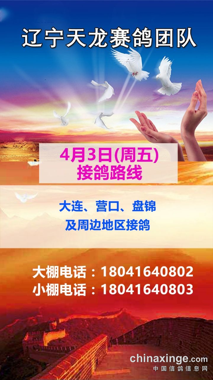 辽宁天龙赛鸽团队4月3日接鸽路线(大连、营口、盘锦)