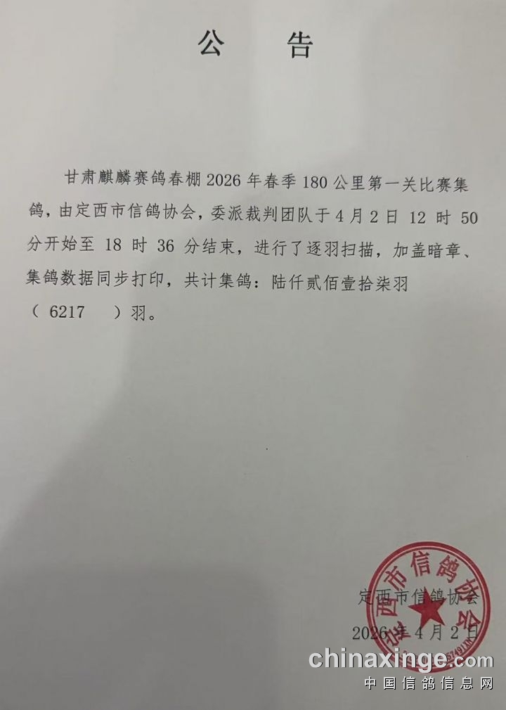 甘肃麒麟赛鸽春棚家飞扫描直播链接