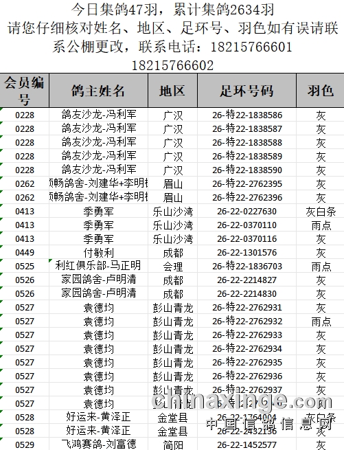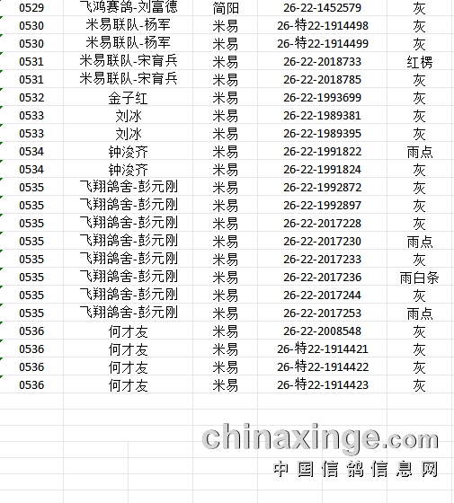 提示:如果此页面是训放清单,要想快速查询鸽环号,请按