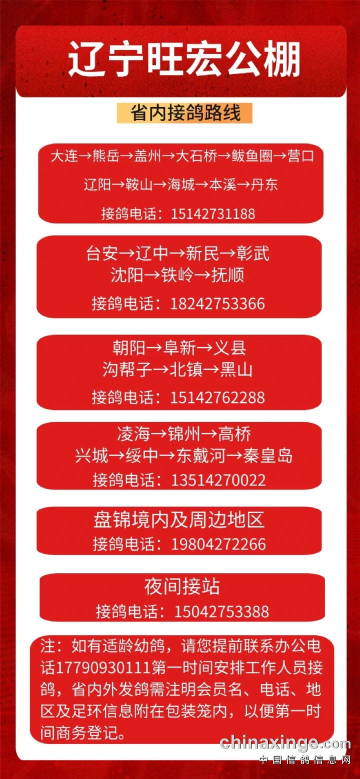 辽宁旺宏春棚:省内每日接鸽路线