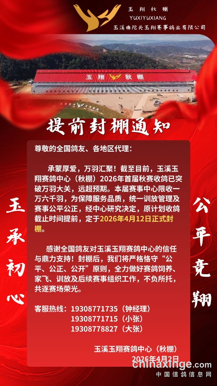 玉溪玉翔赛鸽中心2026首届秋赛详细规程
