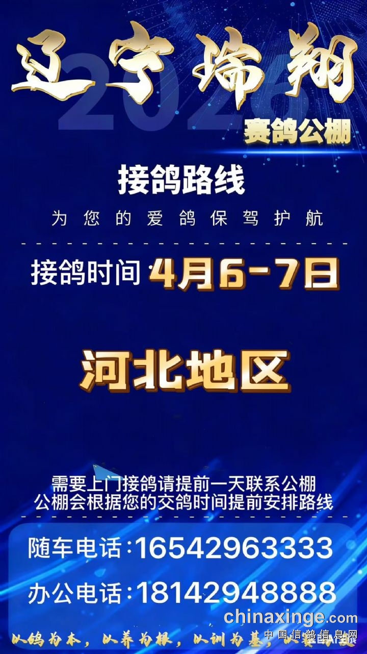 辽宁瑞翔赛鸽公棚4月6-7日河北地区接鸽公告